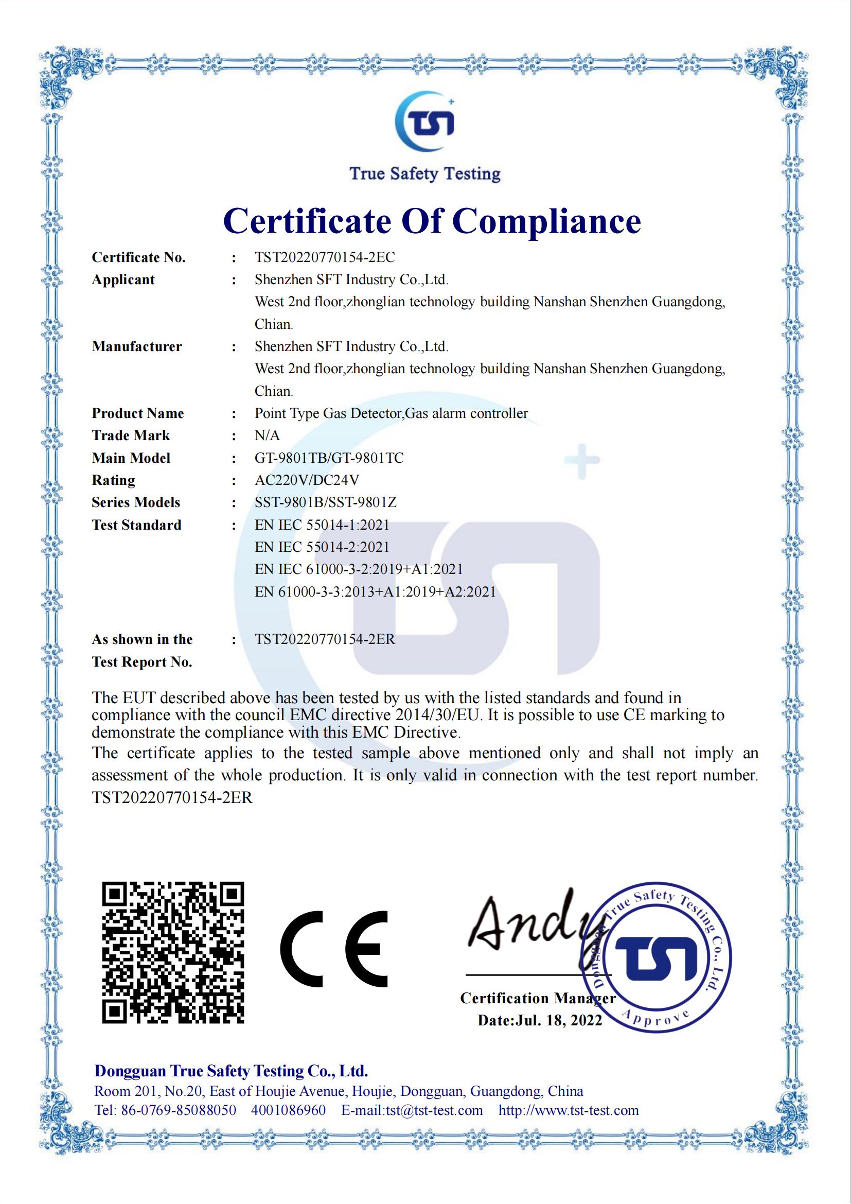 索富通气体报警器欧盟CE认证